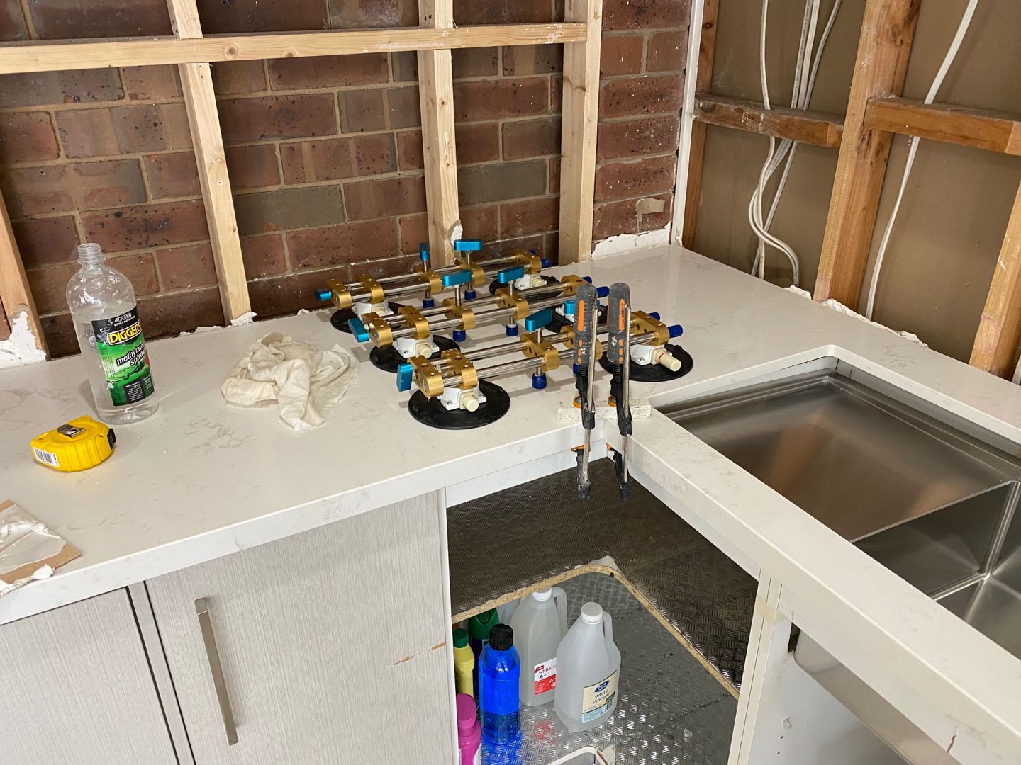 It is the auxiliary tool of kitchen countertop jointing, jointing after the countertop smooth seamless.